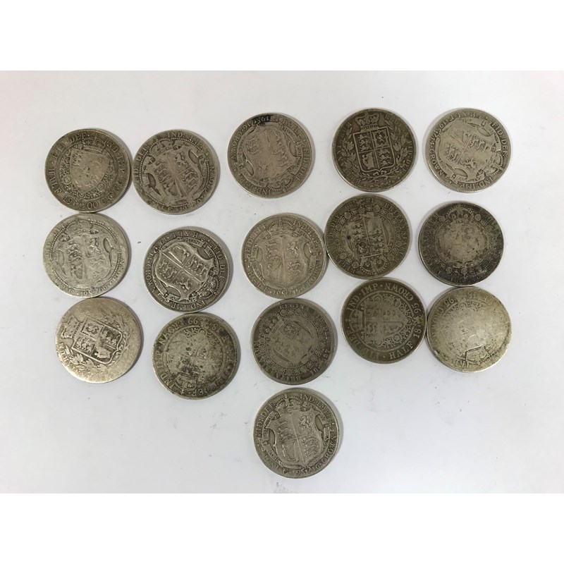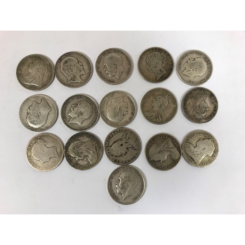 HALF CROWNS VICTORIA TO GEORGE V A collection of half crowns: 1875, 1887 (2), 1899, 1900, 1889, 1890, 1895 (2), 1907, 1909, 1913, 1914, 1915, 1916 (2). 16 COINS.