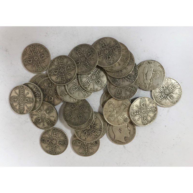 Florins for 1911, 1914 (6), 1915 (7), 1916 (5), 1917 (3), 1918 (3), 1919 and three others. 29 coins.