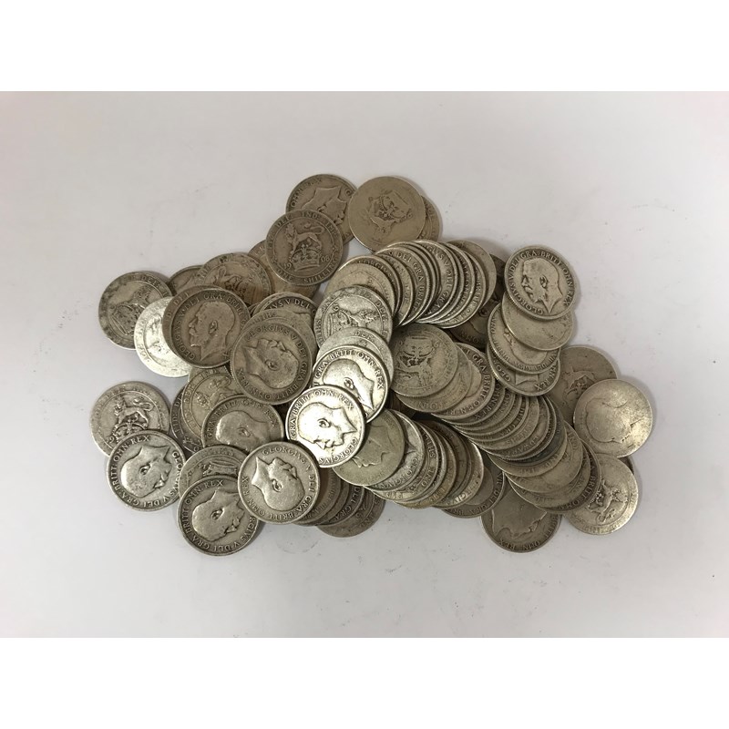 A COLLECTION OF VICTORIAN AND LATER SILVER SHILLINGS. Victorian, Edwardian and George V silver Shillings, between 1842 and 1919. 91 coins.