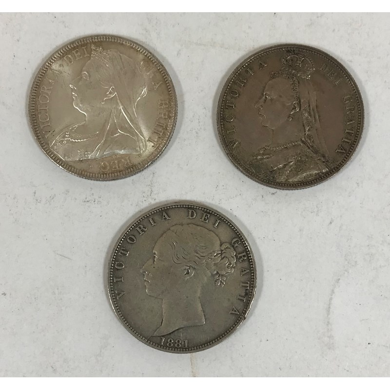 THREE VICTORIAN HALF CROWNS. Victorian half crowns: Young head, 1881, Jubilee bust, 1887 and Old veiled bust, 1893, (3)