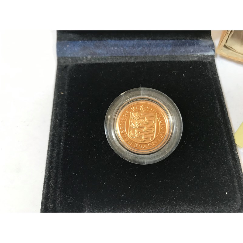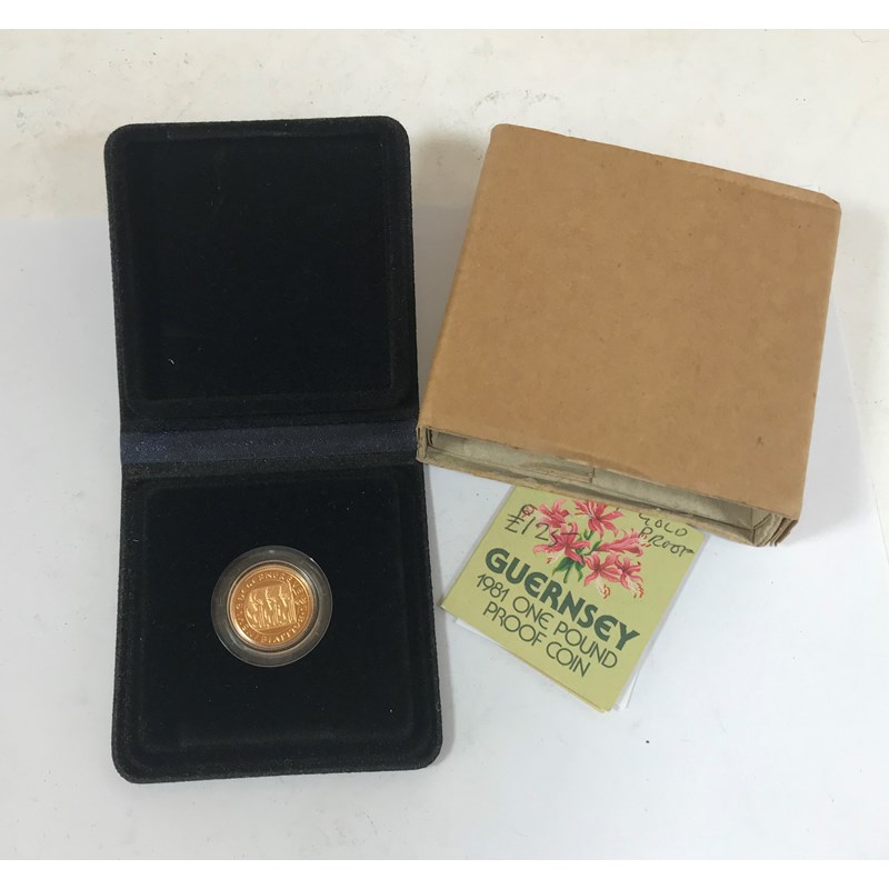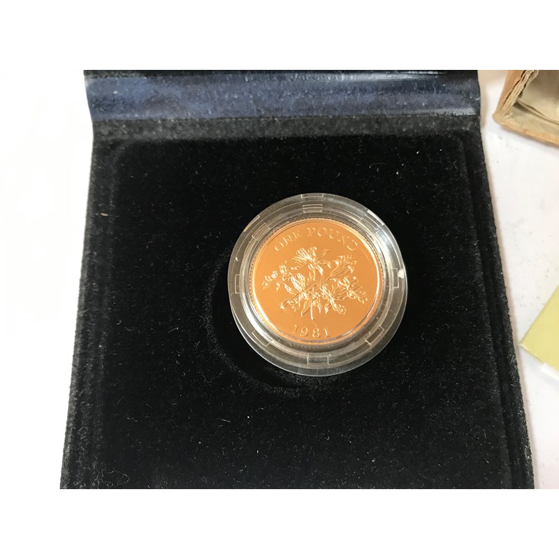 A GUERNSEY PROOF ONE POUND GOLD COIN. A Royal Mint one pound proof gold coin, 1981, in original capsule and case of issue.