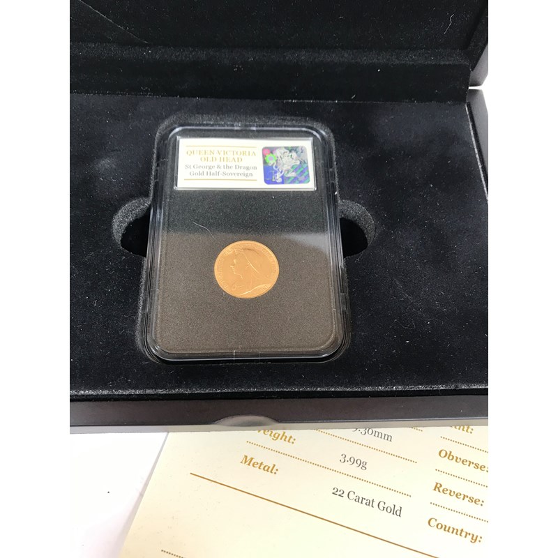 A HALF-SOVEREIGN. A Victorian 'Old Head' half-sovereign dated 1899, in capsule and presentation case.