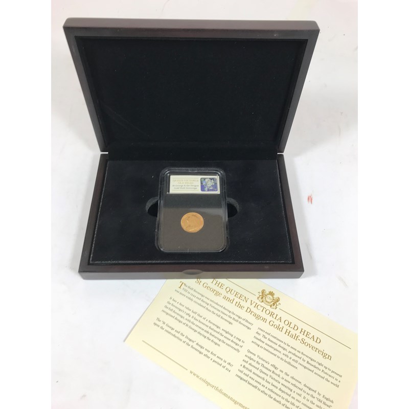 A HALF-SOVEREIGN. A Victorian 'Old Head' half-sovereign dated 1899, in capsule and presentation case.
