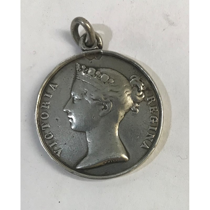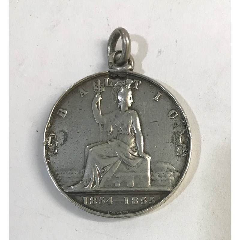 A BALTIC MEDAL PRIVATELY NAMED. A Baltic Medal, 1854-55, awarded unnamed but this example privately named to Harry W. Rapson, previously mounted as a brooch, lacking ribbon.