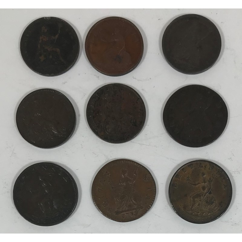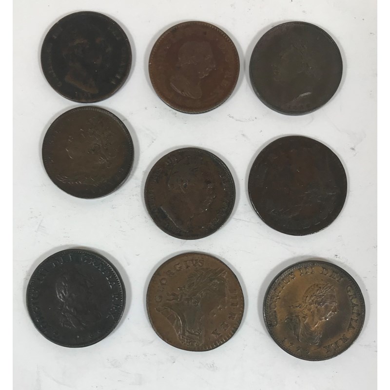 A COLLECTION OF FARTHINGS, George III - William IV. Farthings: George III 1773 (2), 1799 (2), 1806, George IV 1822, William IV 1826, 1831, 1835. 9 coins.