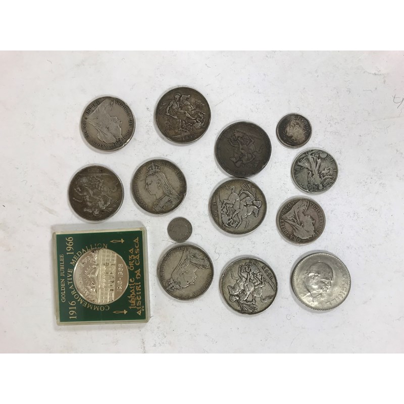 A GEORGE III CROWN AND A COLLECTION OF VICTORIAN CROWNS. A George III Crown dated 1820, LX edge, Victorian Crowns: 1890 (2) 1893, LVI edge (4), 1899 LXIII, and other similar coins, 14 coins.