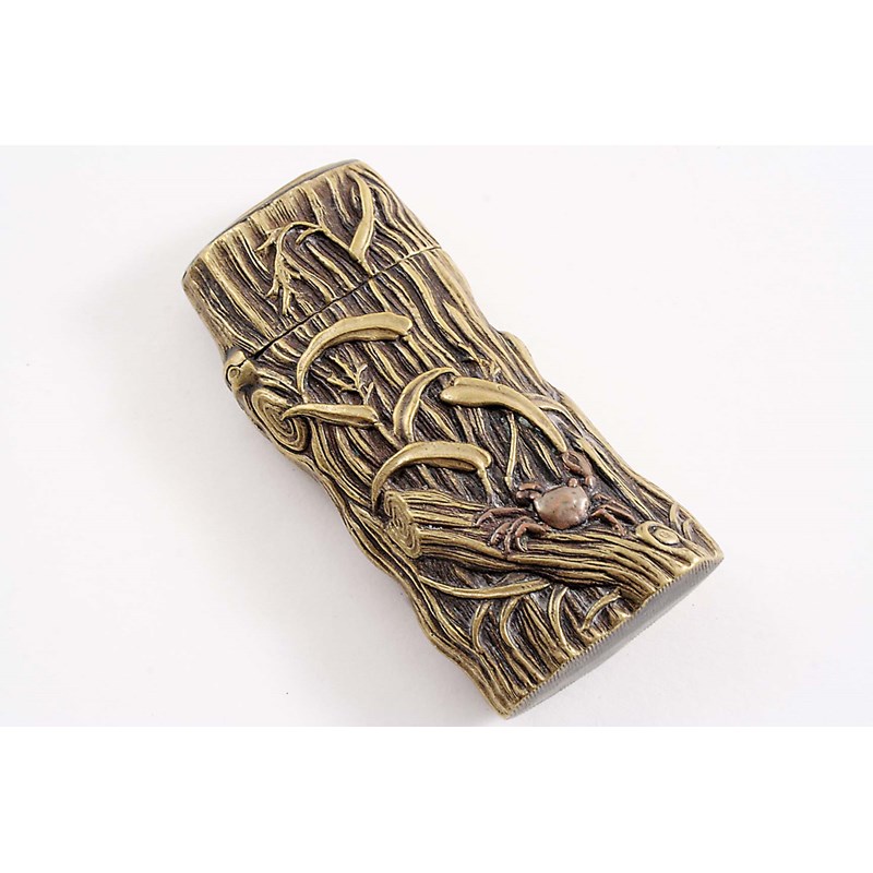 the brass body resembling a leafy tree trunk with a copper crab crawling up one side; 2.7" (6.7 cms) long