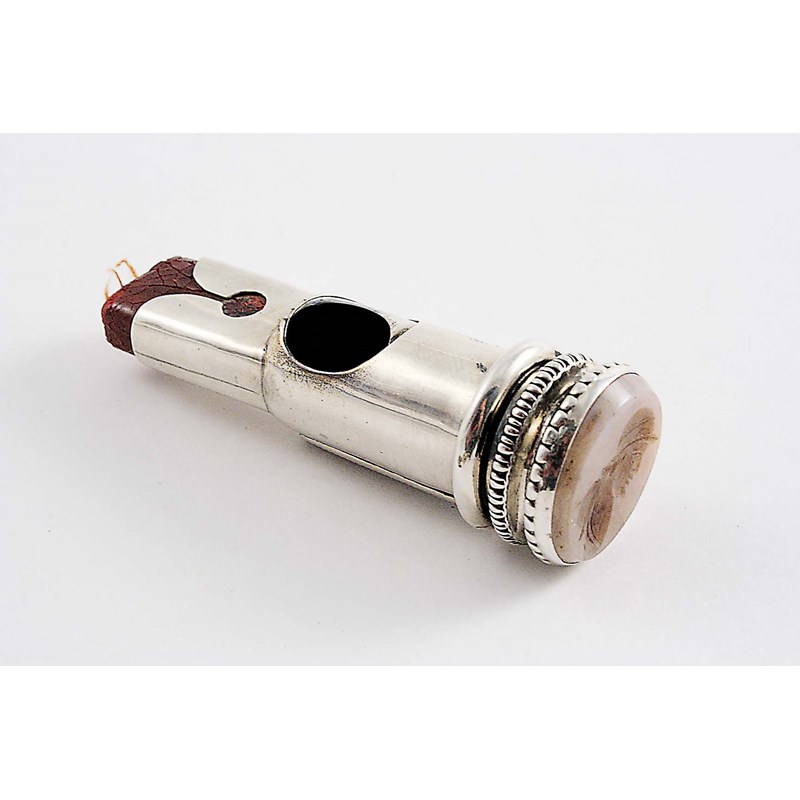 AN EDWARDIAN SILVER VESTA CASE, SEAL & SEALING WAX HOLDER COMBINED, with rose-quartz matrix and intaglio portrait bust, maker's mark "JSP", Birmingham 1901; 2.3" (6 cms) long