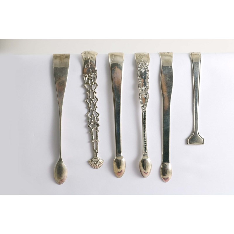 Six various pairs (one pair crested, three with initials), mixed dates, by the following makers:- R. Cattle & J. Barber, J. Barber & W. Whitwell, J.Hampston & J. Prince, and three pairs by William Astley; 6.3 oz (6)