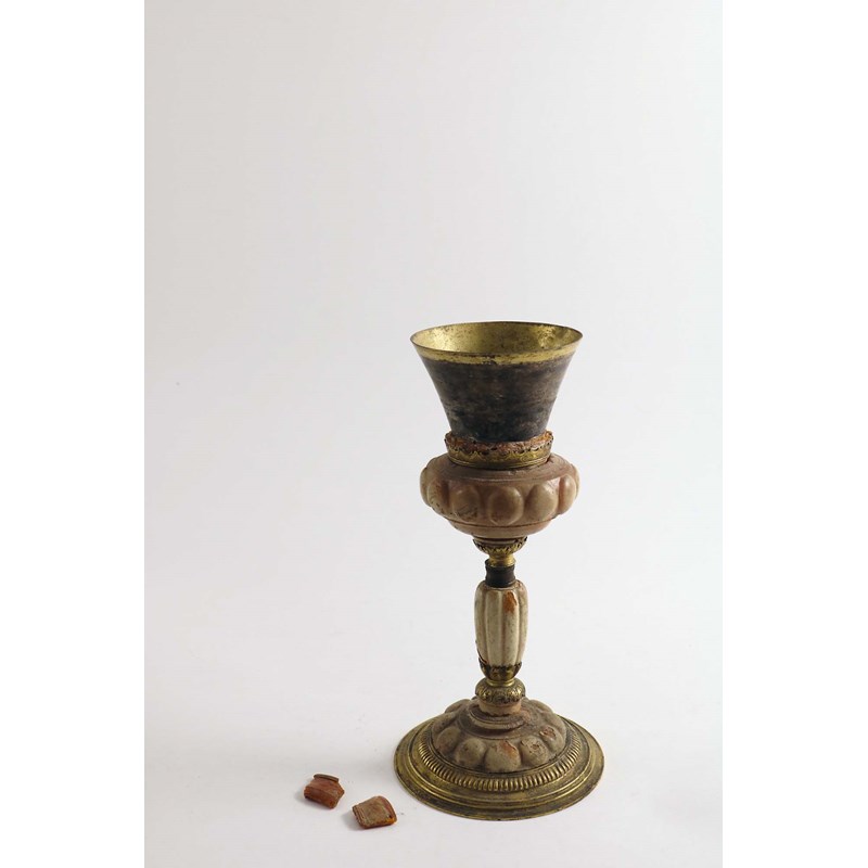 A 17TH CENTURY CONTINENTAL GILT-METAL MOUNTED AMBER GOBLET