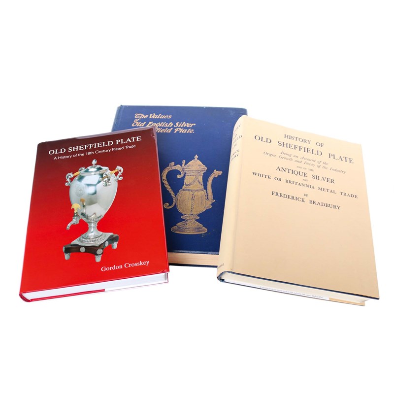 Crosskey, G: Old Sheffield Plate, 2011; Bradbury, F: History of Old Sheffield Plate 1968 (with dust wrapper), Caldicott's Old English Silver & Sheffield Plate and a quantity of related titles (lot)