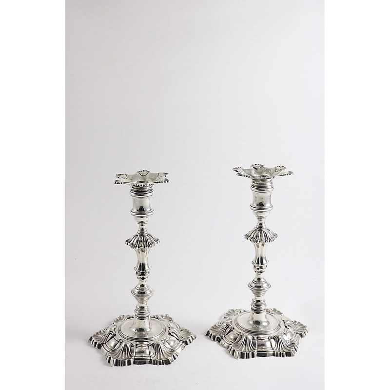 A PAIR OF GEORGE II CAST CANDLESTICKS