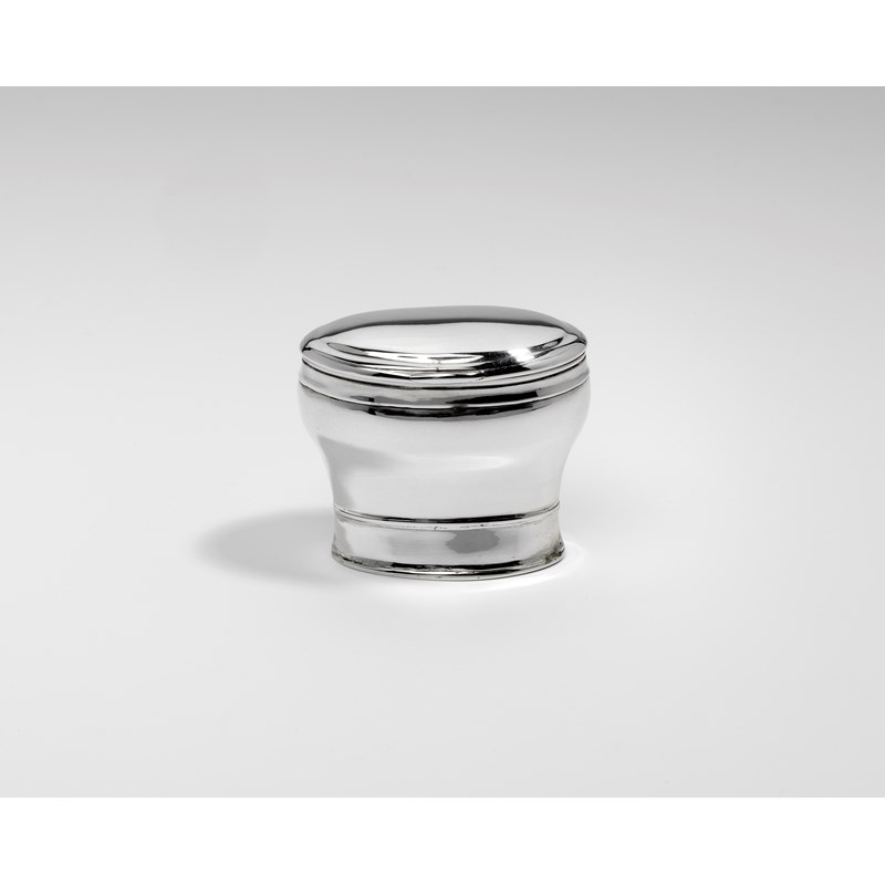 of "upright" form, and oval section with reed borders, maker's mark only struck once in the cover, by George Cooper, of Aberdeen c.1740; 1.9" (4.7 cms) high; 1.8 oz
