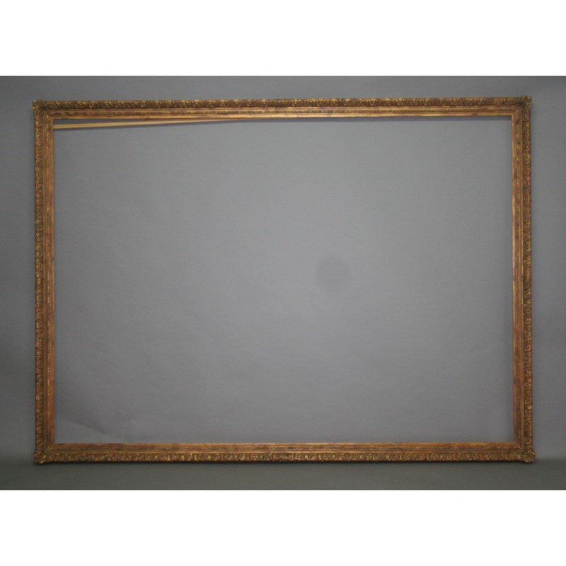 A GILT PICTURE FRAME in early 18th Century style, modern, with stylised leafy scroll border To fit canvas 195 x 139cm.