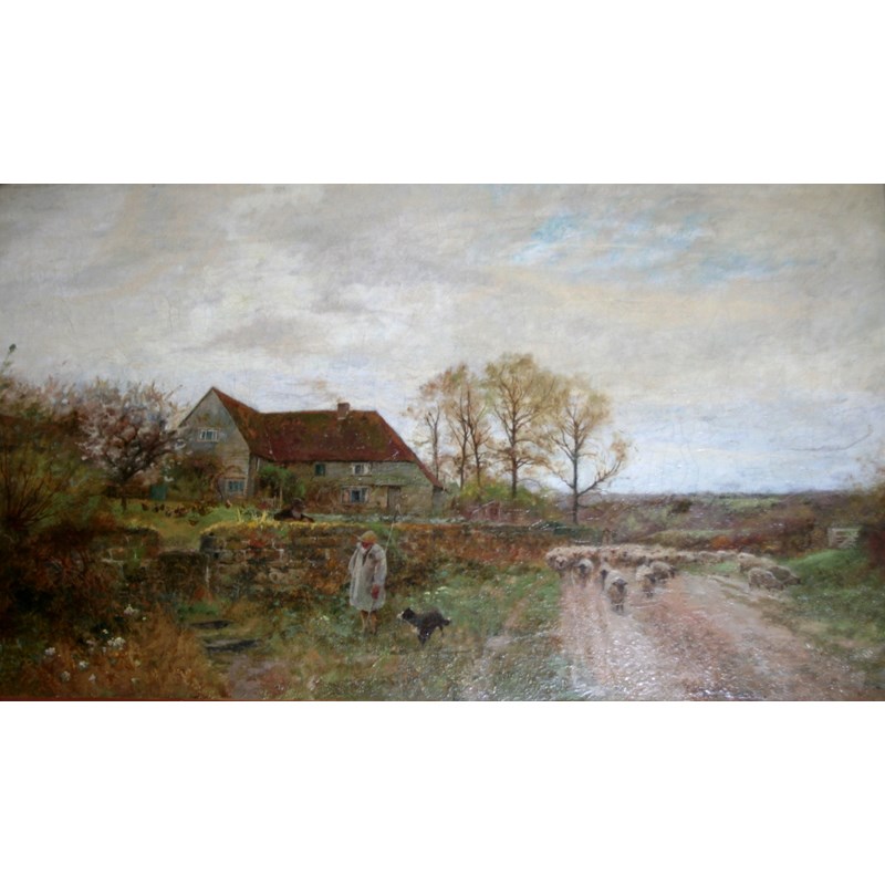 ERNEST PILE BUCKNALL (1861-1935) DROVING SHEEP ON A COUNTRY LANE Signed, oil on canvas 45 x 75.5cm.