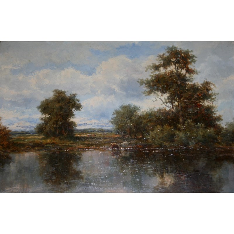 ‡CAMPBELL ARCHIBALD MELLON (1876-1955) CATTLE WATERING AT THE RIVER EDGE Signed, oil on canvas 34.5 x 52cm.