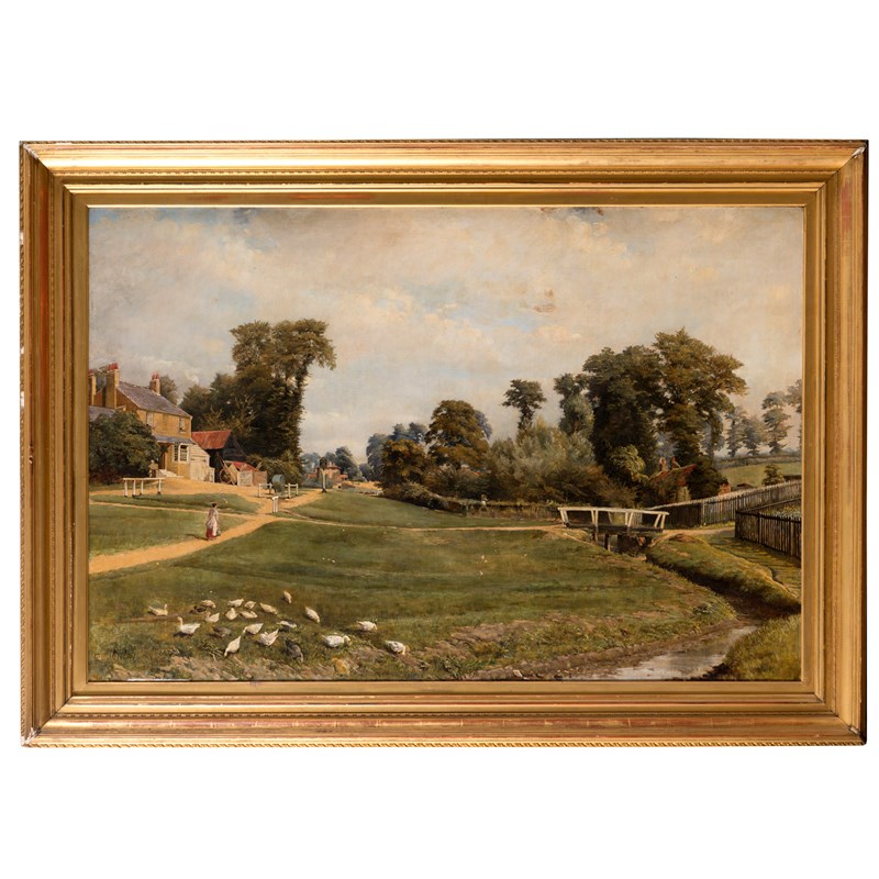 E** O** JONES (Circa 1900) A SUMMER DAY NEAR THE CROWN INN Signed, oil on canvas 90.5 x 136cm.