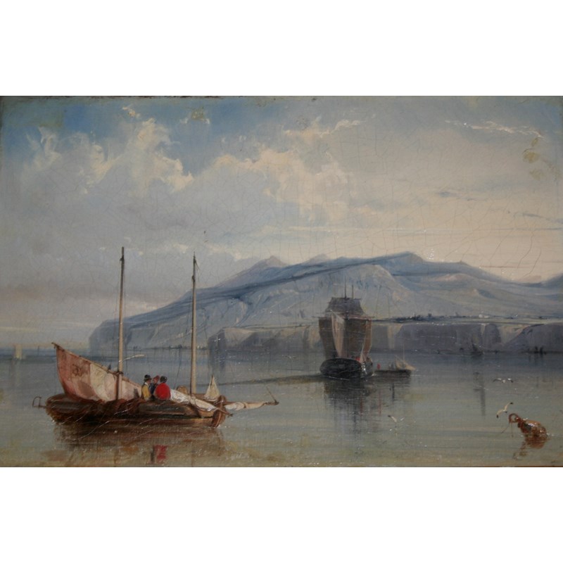 EUGENE LEPOITTEVIN (1806-1870) VESSELS ON A CALM OFFSHORE Signed with monogram on sail of boat on left, oil on canvas 27 x 39.5cm.