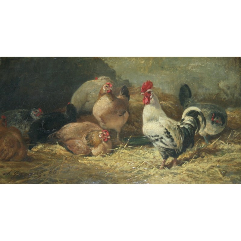 CHARLES JACQUE (1813-1894) POULTRY IN A BARN Signed an dated 66, oil on canvas 21 x 37cm.
