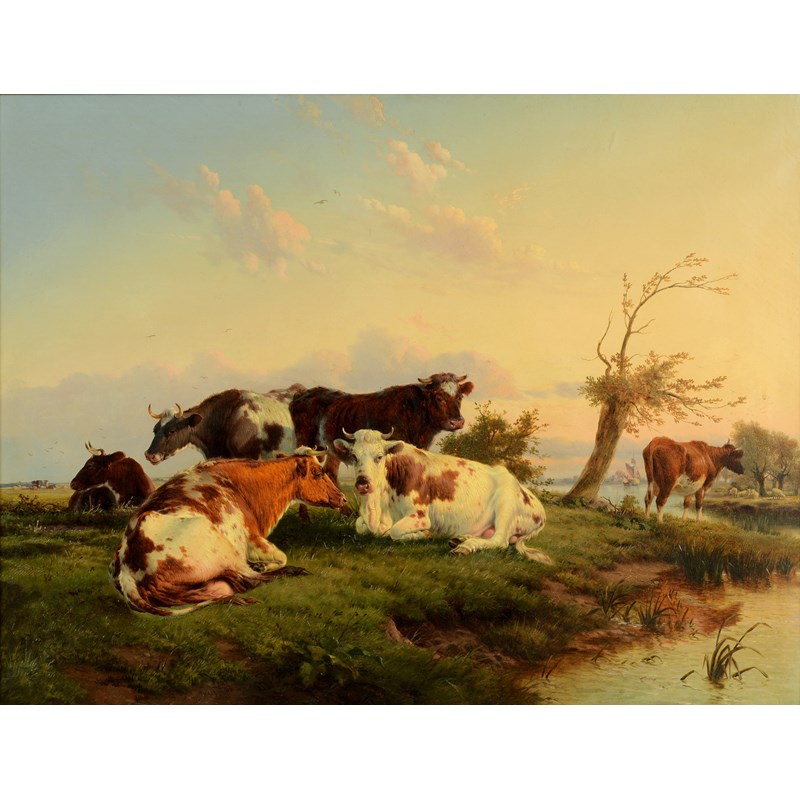 CATTLE RESTING BY A RIVER
