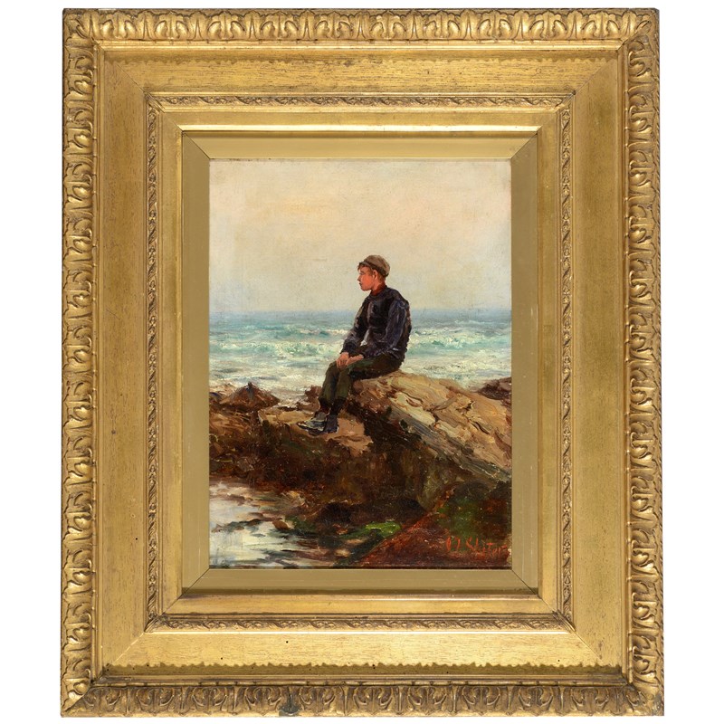 JOHN FALCONAR SLATER (1857-1937) AWAITING THE FLEET Signed, oil on canvas 39 x 29cm.