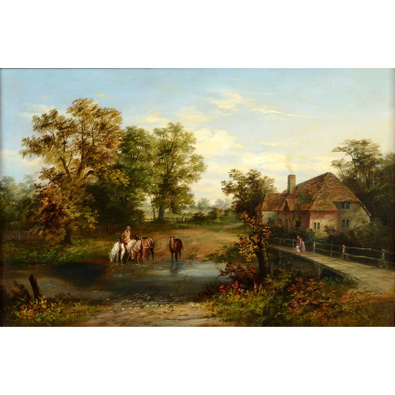 ELLEN PARTRIDGE (Fl.1880-1894) WATERING HORSES AT THE FORD Oil on canvas 39 x 59.5cm.