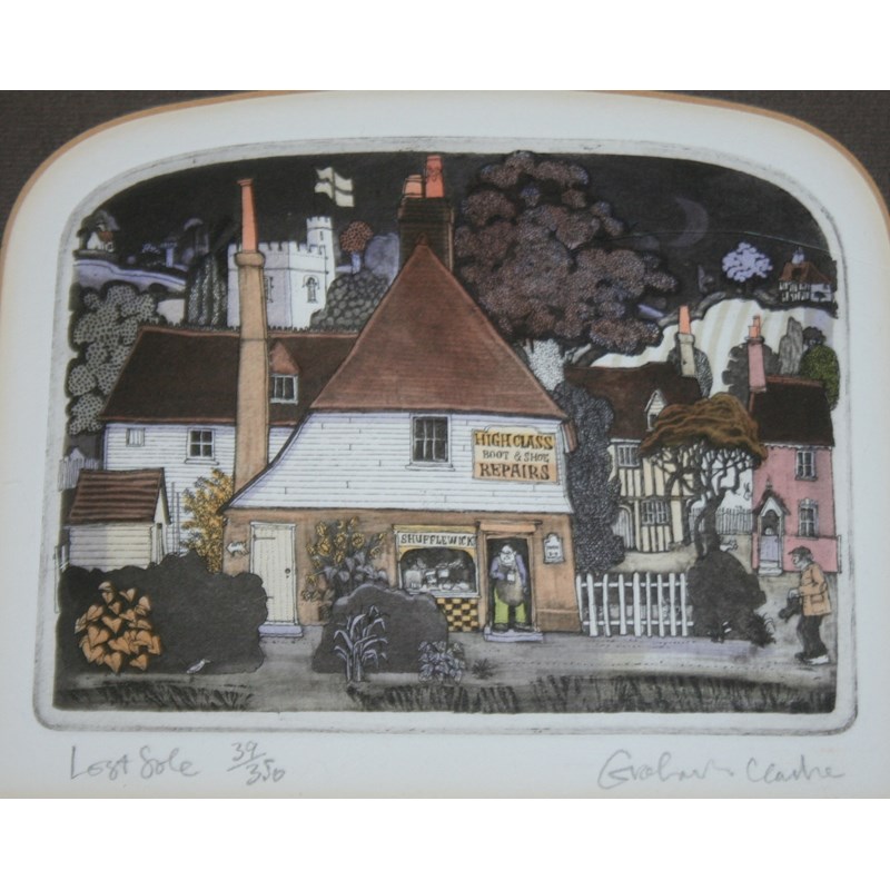‡GRAHAM CLARKE (b.1941) LOST SOLE; THE VERY PLAICE; PROPER JOB; T4-2 Four, coloured etchings, each signed, titled and numbered 39/350 Each 12.5 x 16cm (4)
