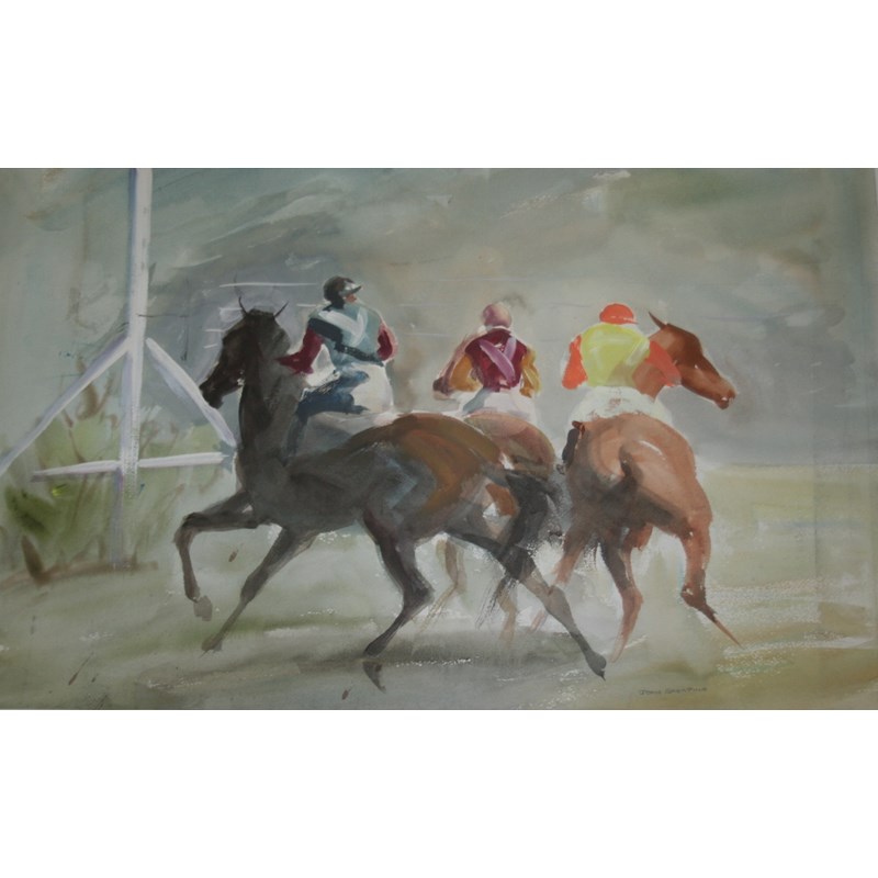 ‡JOHN SKEAPING, RA (1901-1980) BEFORE THE START Signed in pencil, watercolour 45.5 x 73.5cm. Provenance: The family of the artist