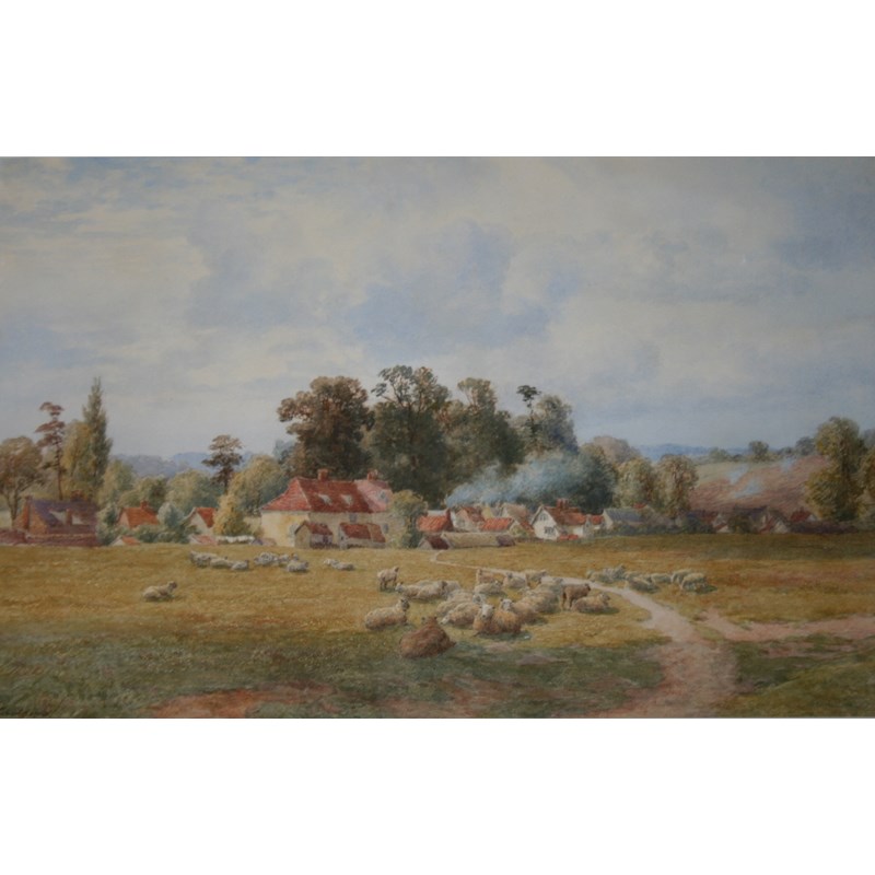 CHARLES TOPHAM DAVIDSON (b.1848, fl.1870-1902) SHEEP RESTING AT EARL SOHAM, SUFFOLK Signed, watercolour and pencil 31 x 48cm.