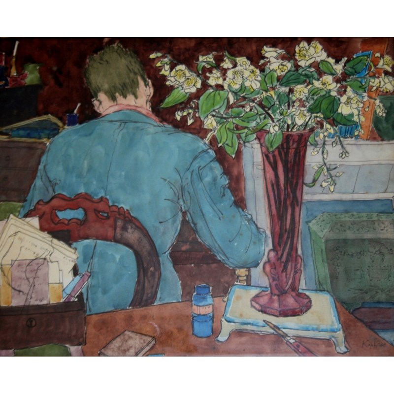 ‡EDMOND XAVIER KAPP (1890-1978) WRITER & SYRINGA Signed and dated 38, watercolour with pen and ink 31.5 x 39.5cm. Exhibited: London, Wildenstein & Co, 1939, no.23 (bt. Courtauld)