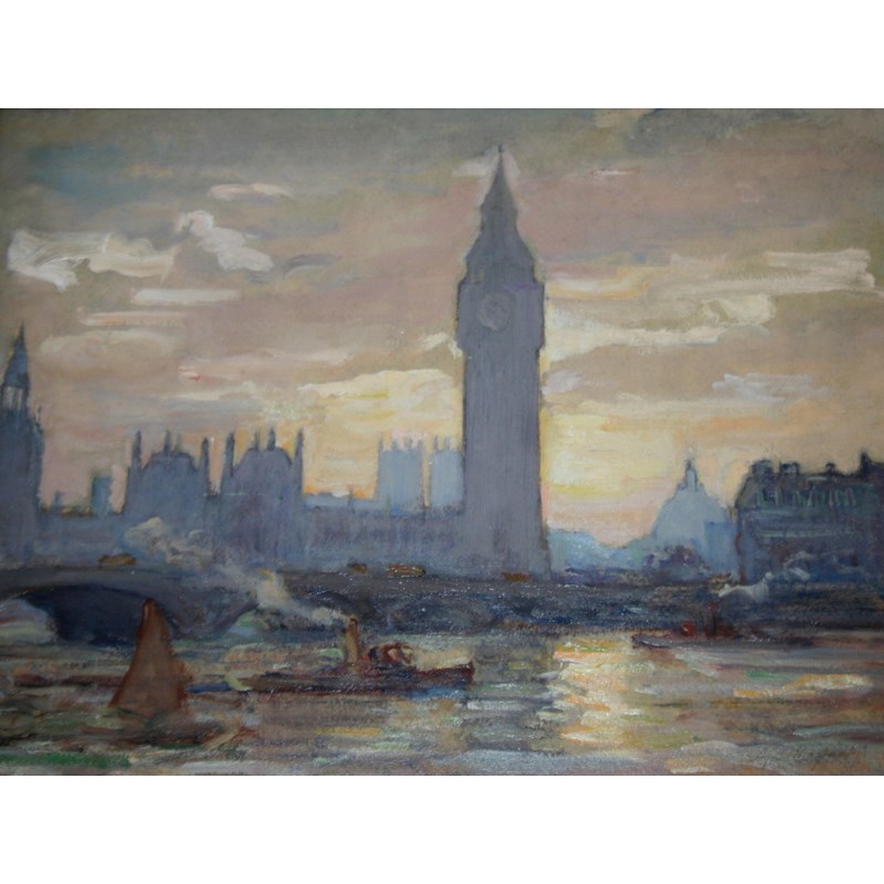 ‡ALFRED JOHN BILLINGHURST (1880-1963) THAMES AT WESTMINSTER Signed, oil on panel 34.5 x 44.5cm.