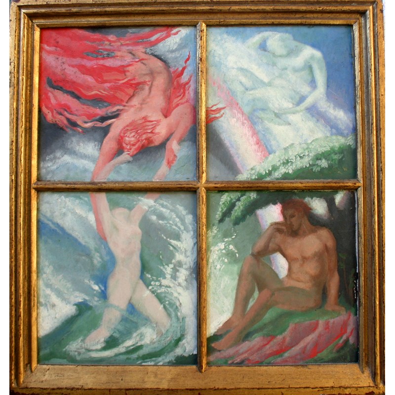 with a quantity of further work by Maclagan, to include 12 rolled or unstretched oils; 2 framed oils; 5 rolled or unframed gouaches; 7 watercolour and drawings, one framed; subjects to include putti, figure groups of a religious or spiritual nature, nature studies (flowers, cockerel, fish, hermit crabs, sea shells etc) etc (a lot)