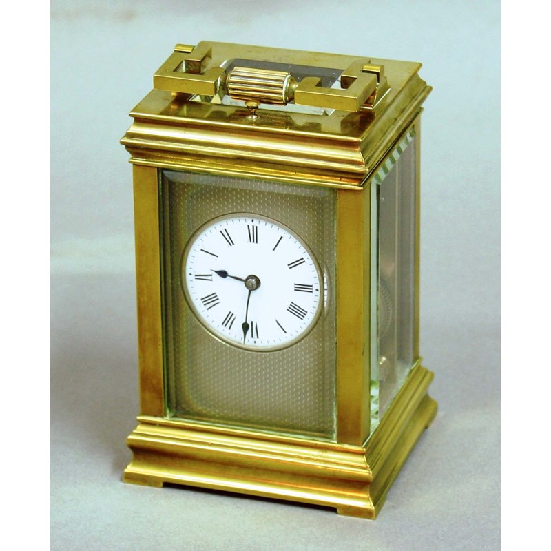 BRASS FOUR PANE CARRIAGE CLOCK,