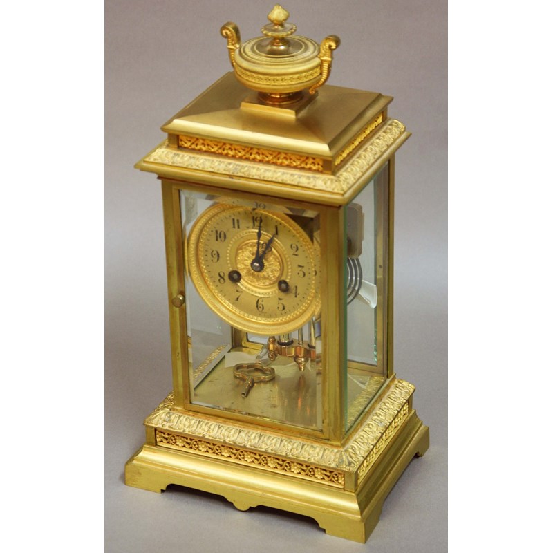 FRENCH ORMOLU FOUR PANE MANTLE CLOCK,