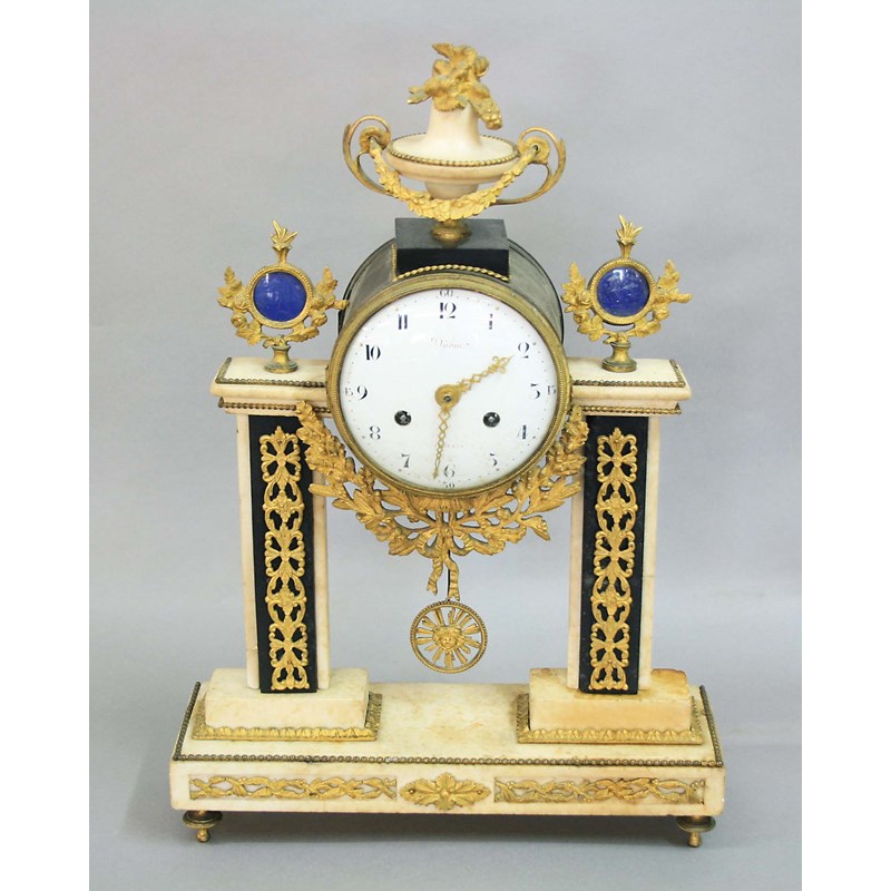 FRENCH MARBLE AND GILT METAL MOUNTED PORTICO CLOCK,