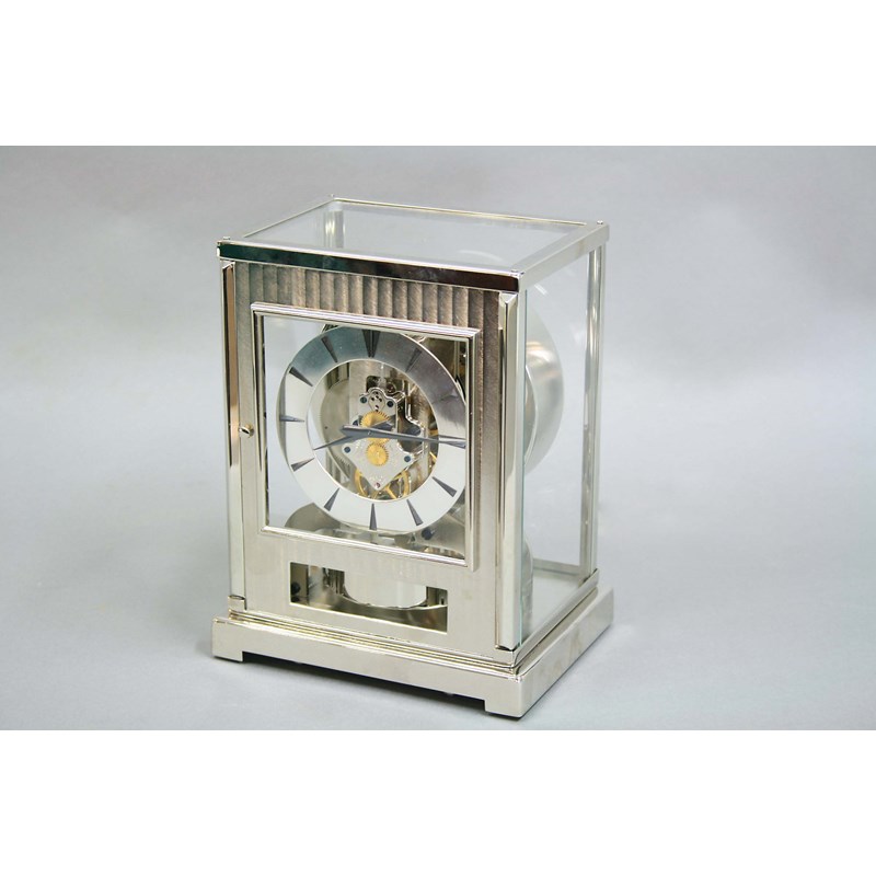 JAEGER LE COULTRE ATMOS CLOCK, rhodium plated, 15 jewel movement number 69259, with baton numerals and textured front, height 22.5cm
