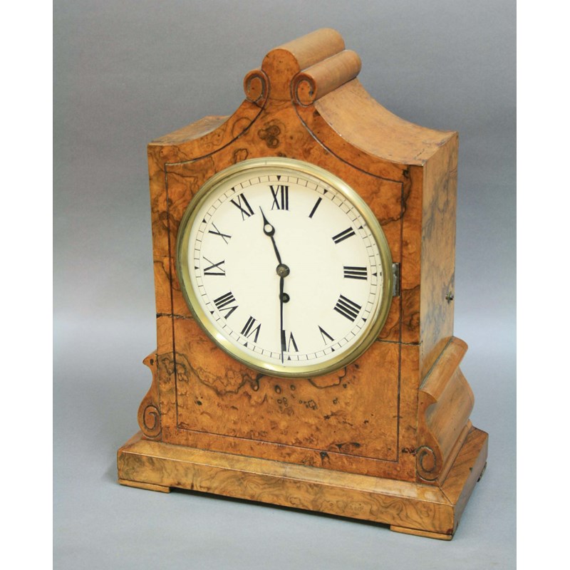 VICTORIAN BURR WALNUT PAGODA BRACKET CLOCK, the 7 1/2" painted dial on a brass eight day, single fusee movement striking to a bell, 45.5cm
