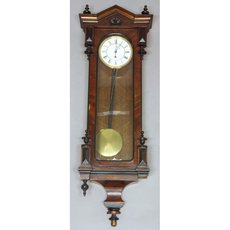 GUSTAV BECKER VIENNA STYLE WALL CLOCK, late 19th century, 6 1/4" enamelled dial with inscription on a single train movement, in a walnut and ebonised case, 105cm