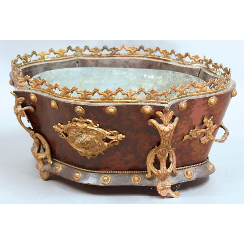 FRENCH BURR WALNUT JARDINIERE, 19th century, of serpentine form, with gilt metal mounts, length 42cm