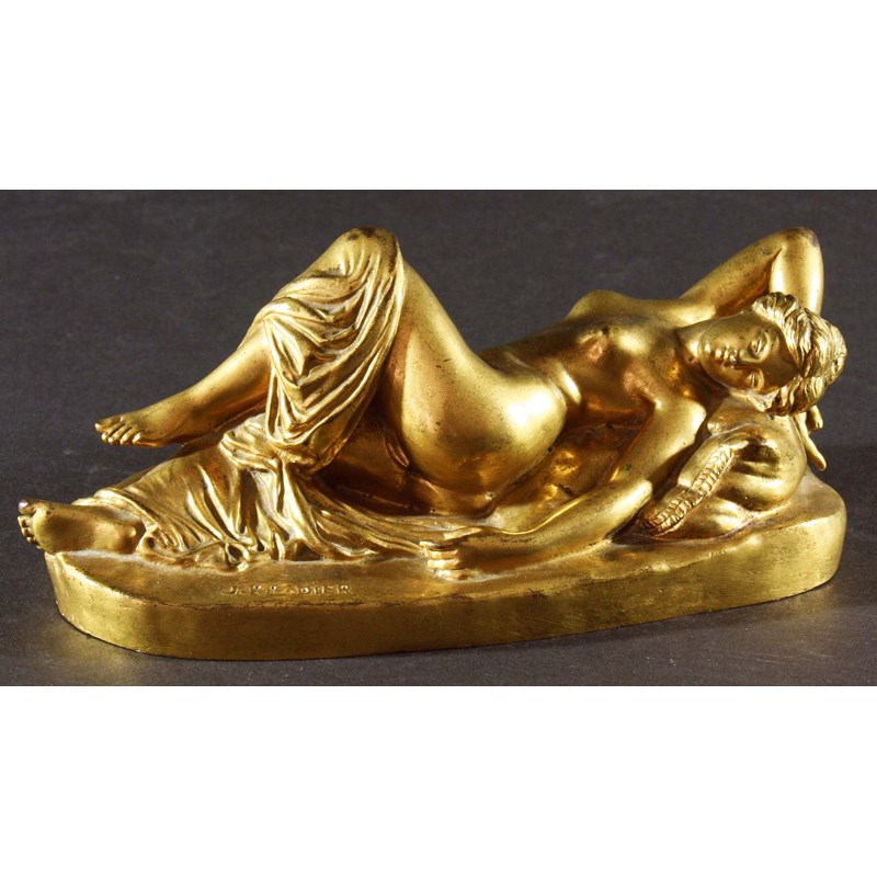 AFTER PRADIER, Nude reclining on a cushion, cast signature, gilt bronze, 18cm