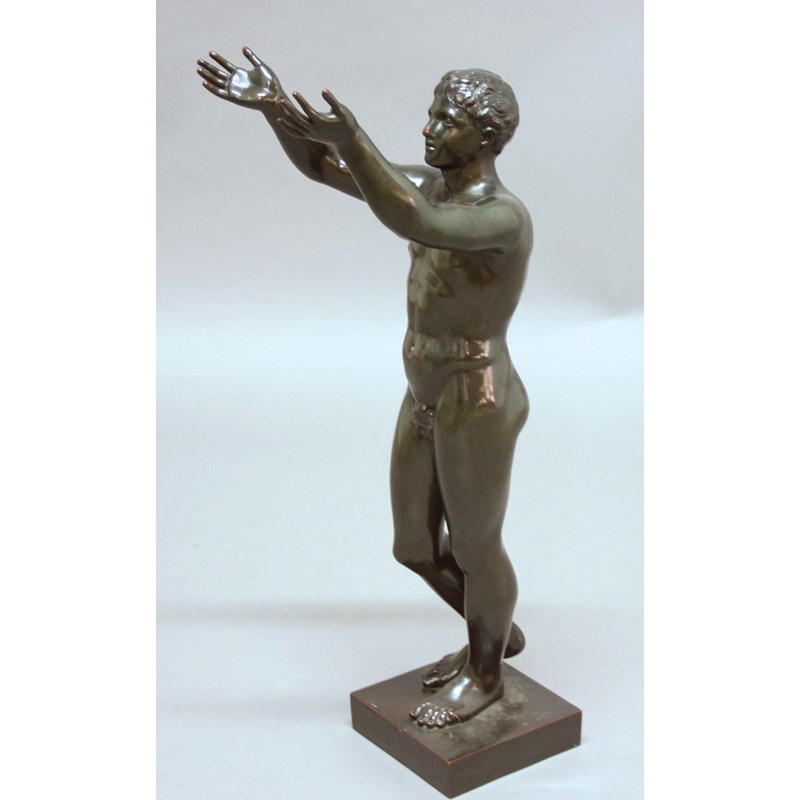 CONTINENTAL SCHOOL, classical figure of a man holding his hands up, wearing a fig leaf, on a square base, bronzed with dark brown patination, 77cm
