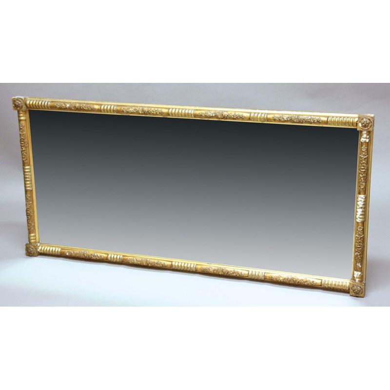REGENCY GILT GESSO MIRROR, the rectangular plate inside a floral and banded frame, 145cm x 69cm