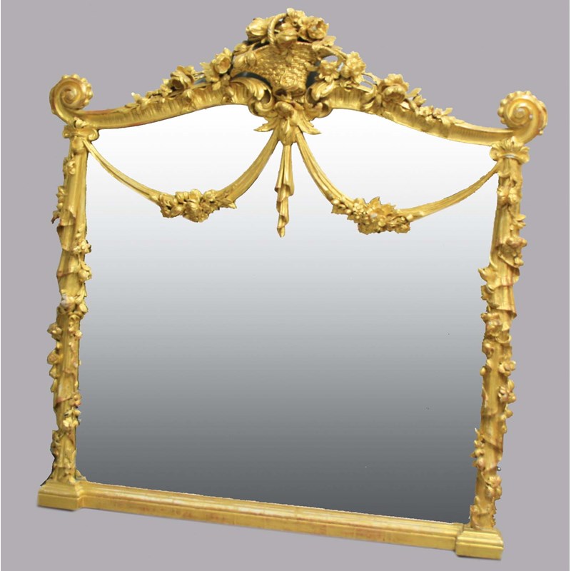 19th century, a central basket of flowers above flowering swags and draped columns around a shaped rectangular plate, height 128cm, width 123cm