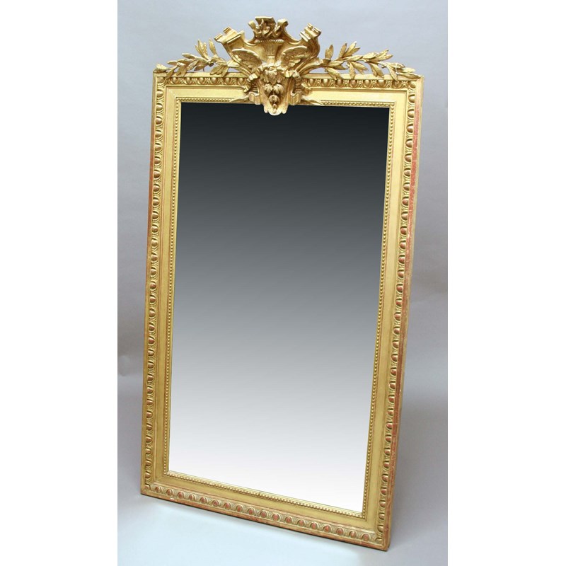 the bevelled rectangular plate inside an egg and dart frame with a central flaming torch and eagle wing crest, height 170cm, width 93cm