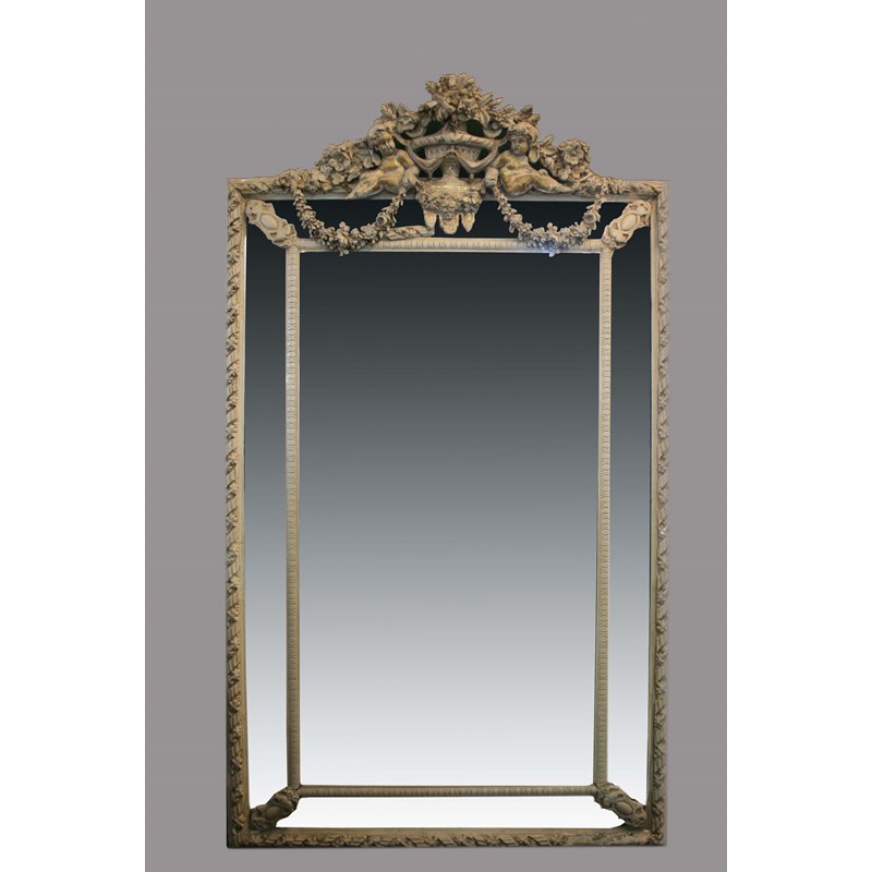 GILT GESSO AND LIME WASHED CUSHION MIRROR,