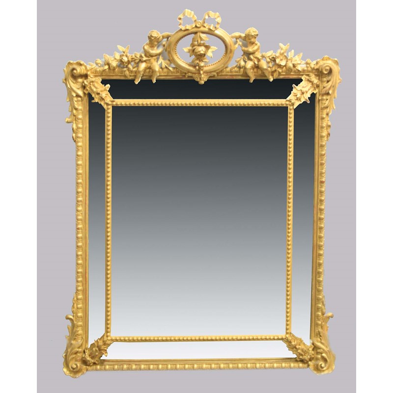 19th century, a central cartouche flanked by cherubs above a bevelled rectangular plate inside four framing plates and an egg and dart frame, 129cm x 101cm