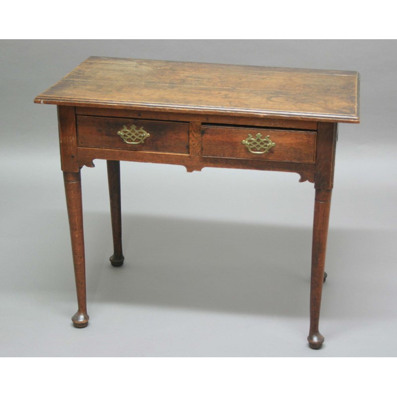 GEORGE III OAK SIDE TABLE, later 18th century, with a pair of frieze drawers, tapering legs and pad feet, width 84cm