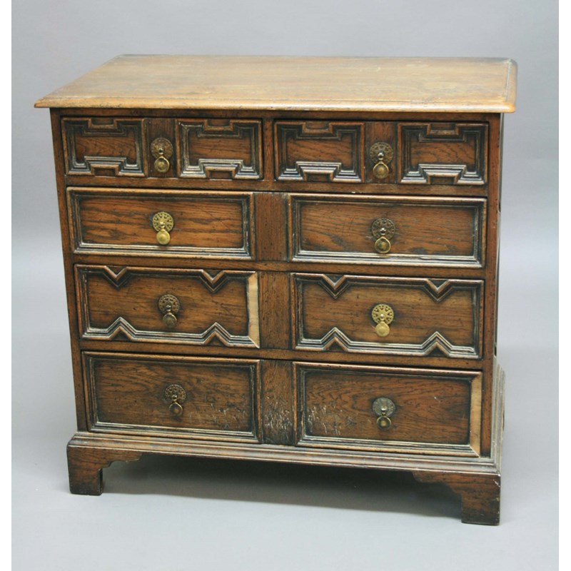 late 17th century and later, pair of short drawers above three graduated long drawers, with geometric moulded decoration, height 89cm, width 94cm