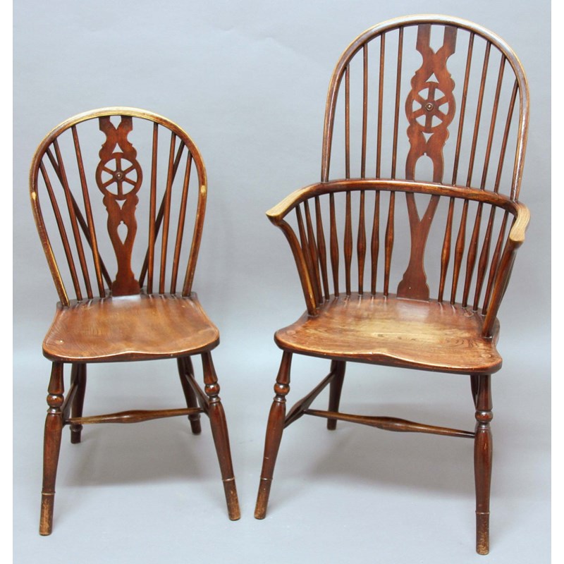 SET OF EIGHT WHEELBACK WINDSOR CHAIRS,