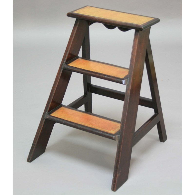SET OF MAHOGANY LIBRARY STEPS, with three tooled leather inset steps, height 62cm